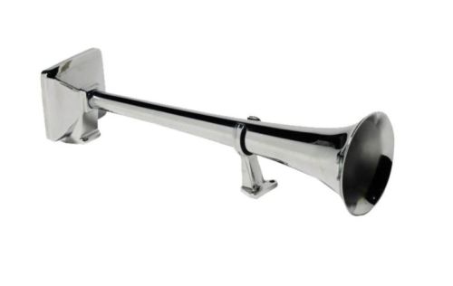 "Le HADLEY 855 est un claxon simple de 56 cm. Il a un bec rond à l'avant (diamètre 12,5 cm) et une partie arrière carrée. Une vraie version "Heavy Duty" qui peut prendre des coups ! Le Hadley est connu pour son son "chaud" et ses chromes de haute qualité. Il est généralement placé sur un côté du véhicule. Ce modèle peut également être monté en version double, chacun d'un côté, si deux sont commandés. Cet avertisseur pneumatique est fourni en standard SANS fonctionnement mais avec un pied d'appui à l'avant. kit de montage et de fonctionnement nécessaire exemple Réf. : 03402171 ou 03402170 (pour 1 ou 2 claxons) ou vous pouvez commander toutes les pièces apart (= notre ref. 03381416 ou 03389098) Le coupleur pour l'alimentation en air de ce klaxon peut être commandé séparément (= notre réf. 03381657 ou 03381362 ou 03381363 ou 03381364)"