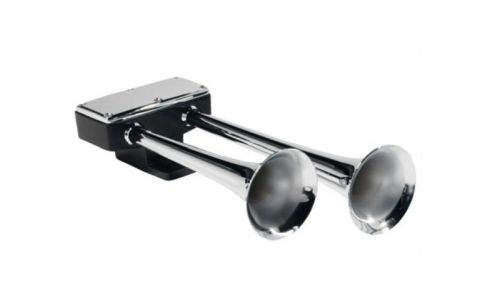 "Le HADLEY CA900 est un cor double dont un bec est plus court que l'autre (23 & 39 cm) et qui sont montés sur une base centrale. Les becs sont ronds (9,5 cm) et le dos est rectangulaire et plat. Ce Hadley est connu pour son son puissant et est principalement utilisé avec des véhicules plus petits ou en cas de manque d'espace. Les trompettes et le diaphragme sont en chrome brillant sur une base laquée noire. Cet avertisseur pneumatique est fourni en standard SANS commande et peut être monté sans pieds de support."