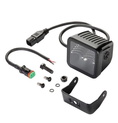 "Features: • LED high-beam cubes • Full blackout appearance including black brackets • Sleek design eliminates dust and dirt from being lodged in edges • Each kit includes the wiring harness with DT connector, switch, connector and relays (easy to install) • Compact design for universal installation Specifications: • 4 High intensity LEDs • Light function: FLOOD • Die-cast aluminum housing • Aluminum, black stainless steel mounting bracket • Measured lumen: 3000 lm • Multivolt 10-30V DC • Current consumption: 3.4 A (12V) / 1.6 A (24 V) • Connection: 1.64 ft (500 mm) cable with DT connector + short adapter harness • 40 W • Protection class: IP 68, IP 69K • EMC protection: ECE-R10 • Color temperature: 5700 Kelvin • Weight: 358 g • Sold as kit"