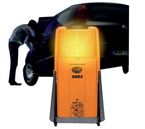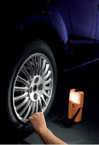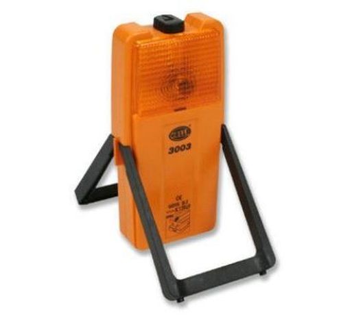 "Lampe de détresse avec lampe de travail. Boîtier de lampe en plastique. Alimentation 5 piles de 1,5V (LR20, non fournies). Avec testeur de piles intégré. (Hella) "