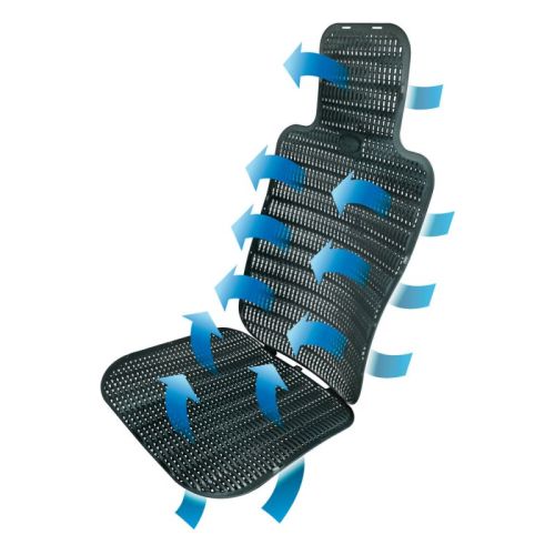 "Trucker Fresh, le coussin respirant La structure spéciale permet à l'air de passer librement à travers le corps et le siège. Un changement d'air permanent évite la transpiration et assure une fraîcheur extraordinaire tout au long de votre voyage. Universel pour tous les sièges. Fourni avec des sangles élastiques pour une installation facile et simple."