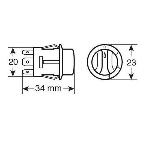 "• Interrupteur rotatif - 12/24V - 10A • 10A maximum. 4 fonctions. • Trou Ø 20,2 mm."