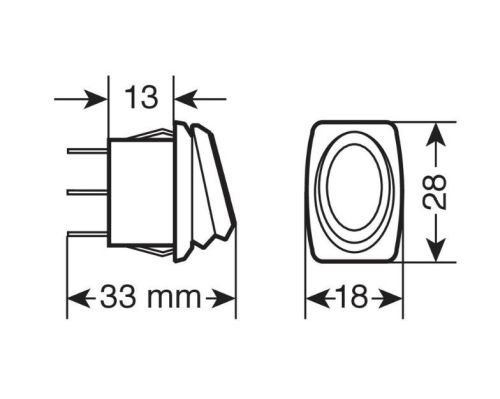 • 12 V / 24 V • 10 A max. • LED 2 fonctions: toujours allumée ou activée. • IP65 étanche • Taille d'encastrement 23x12 mm