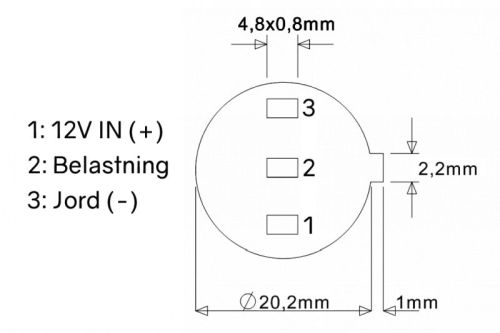 "• Interrupteur 12V avec max. 6A • Lampe intégré, monté dans un trou de 20 mm • Avec symbole longue portée"
