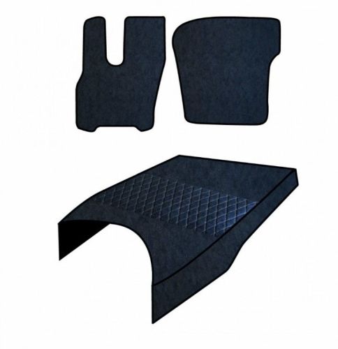 • Ensemble de tapis sur mesure en similicuir • Tapis gauche et droit en tissu lisse pour un nettoyage plus facile et plus rapide • Tapis central matelassé aux élégantes finitions artisanales • Composition : Similicuir / Polyuréthane / Tissé non tissé • Pour DAF XF 2021-> avec 2 sièges à suspension pneumatique