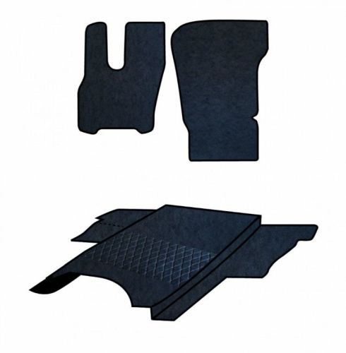 • Ensemble de tapis sur mesure en similicuir • Tapis gauche et droit en tissu lisse pour un nettoyage plus facile et plus rapide • Tapis central matelassé aux élégantes finitions artisanales • Composition : Similicuir / Polyuréthane / Tissé non tissé • Pour DAF XG/XG+ 2021-> avec 1 sièges à suspension pneumatique + 1 siège pliante Cinema passagier