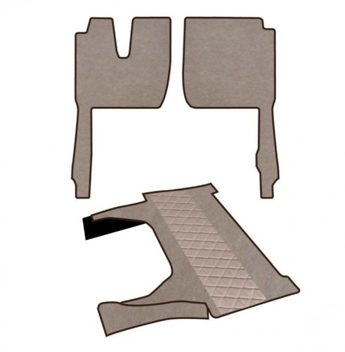 • Ensemble de tapis sur mesure en similicuir • Tapis gauche et droit en tissu lisse pour un nettoyage plus facile et plus rapide • Tapis central matelassé aux élégantes finitions artisanales • Composition : Similicuir / Polyuréthane / Tissé non tissé • Pour Iveco S-WAY MY Active Space Cab 2024->