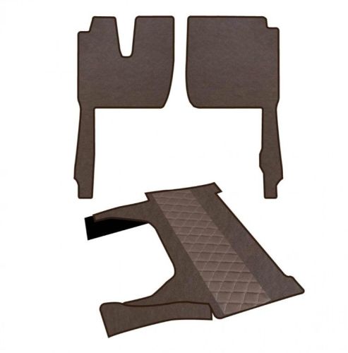 • Ensemble de tapis sur mesure en similicuir • Tapis gauche et droit en tissu lisse pour un nettoyage plus facile et plus rapide • Tapis central matelassé aux élégantes finitions artisanales • Composition : Similicuir / Polyuréthane / Tissé non tissé • Pour Iveco S-WAY MY Active Space Cab 2024->