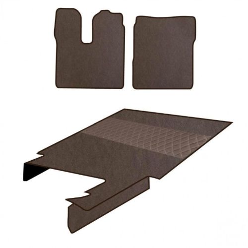 • Ensemble de tapis sur mesure en similicuir • Tapis gauche et droit en tissu lisse pour un nettoyage plus facile et plus rapide • Tapis central matelassé aux élégantes finitions artisanales • Composition : Similicuir / Polyuréthane / Tissé non tissé • Pour MAN TGX 2020-> AVEC FREIN À MAIN ÉLECTRONIQUE !