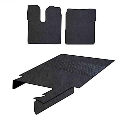 • Ensemble de tapis sur mesure en similicuir • Tapis gauche et droit en tissu lisse pour un nettoyage plus facile et plus rapide • Tapis central matelassé aux élégantes finitions artisanales • Composition : Similicuir / Polyuréthane / Tissé non tissé • Pour MAN TGX 2020-> AVEC FREIN À MAIN ÉLECTRONIQUE !