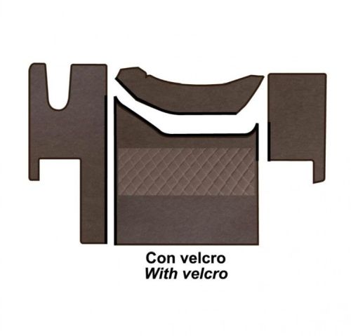 • Ensemble de tapis sur mesure en similicuir • Tapis gauche et droit en tissu lisse pour un nettoyage plus facile et plus rapide • Tapis central matelassé aux élégantes finitions artisanales • Composition : Similicuir / Polyuréthane / Tissé non tissé • Pour Renault T (High Sleeper Cab)
