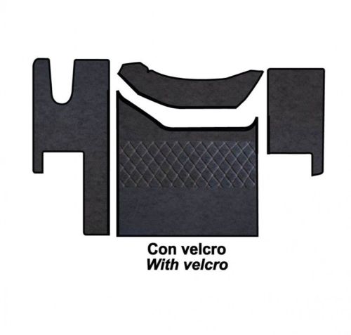 • Ensemble de tapis sur mesure en similicuir • Tapis gauche et droit en tissu lisse pour un nettoyage plus facile et plus rapide • Tapis central matelassé aux élégantes finitions artisanales • Composition : Similicuir / Polyuréthane / Tissé non tissé • Pour Renault T (High Sleeper Cab)
