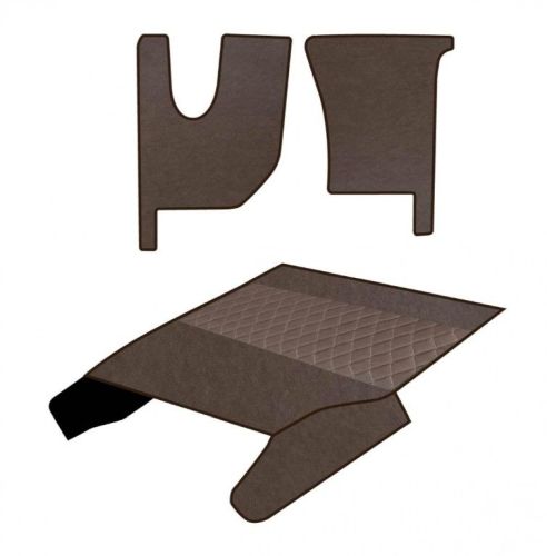 • Ensemble de tapis sur mesure en similicuir • Tapis gauche et droit en tissu lisse pour un nettoyage plus facile et plus rapide • Tapis central matelassé aux élégantes finitions artisanales • Composition : Similicuir / Polyuréthane / Tissé non tissé • Pour Renault T/K/C (cabine jour/nuit/couchette 2500 mm)