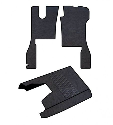 • Ensemble de tapis sur mesure en similicuir • Tapis gauche et droit en tissu lisse pour un nettoyage plus facile et plus rapide • Tapis central matelassé aux élégantes finitions artisanales • Composition : Similicuir / Polyuréthane / Tissé non tissé • Pour Scania série R 2016-> • Siège chauffeur A AIR • Siège passager FIXE PLIABLE