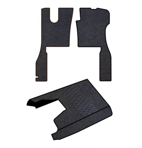 • Ensemble de tapis sur mesure en similicuir • Tapis gauche et droit en tissu lisse pour un nettoyage plus facile et plus rapide • Tapis central matelassé aux élégantes finitions artisanales • Composition : Similicuir / Polyuréthane / Tissé non tissé • Pour Scania série R 2016-> • Siège chauffeur A AIR • Siège passager A AIR