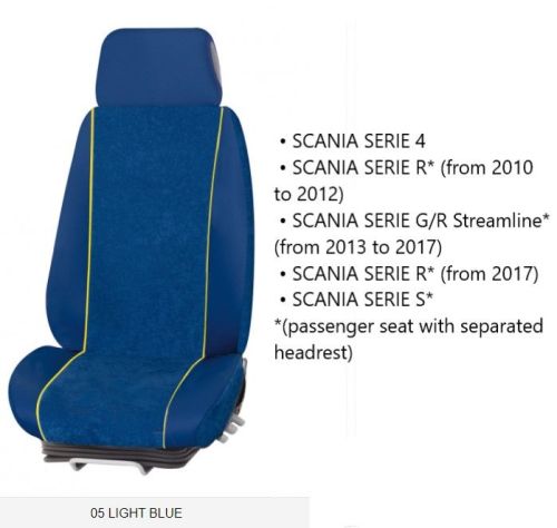 • SCANIA SERIE 4 • SCANIA SERIE R* (de 2010 à 2012) • SCANIA SERIE G/R Streamline* (de 2013 à 2017) • SCANIA SERIE R* (a partir de 2017) • SCANIA SERIE S* *(siège passager avec appui-tête séparé)
