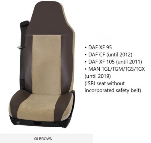 • DAF XF 95 • DAF CF (jusqu'à 2012) • DAF XF 105 (jusqu'à 2011) • MAN TGL/TGM/TGS/TGX (jusqu'à 2019) (ISRI seat without incorporated safety belt)