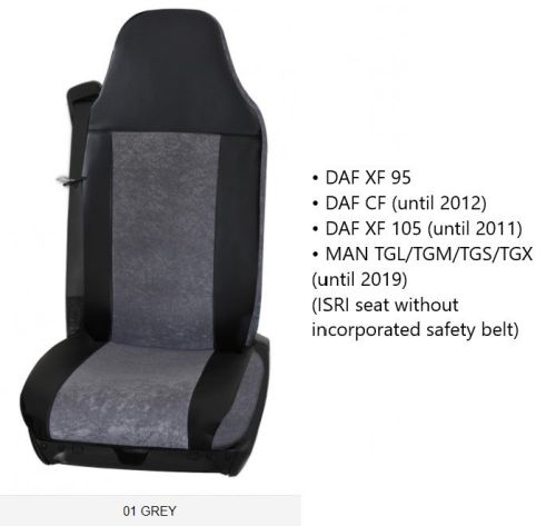 • DAF XF 95 • DAF CF (jusqu'à 2012) • DAF XF 105 (jusqu'à 2011) • MAN TGL/TGM/TGS/TGX (jusqu'à 2019) (ISRI seat without incorporated safety belt)