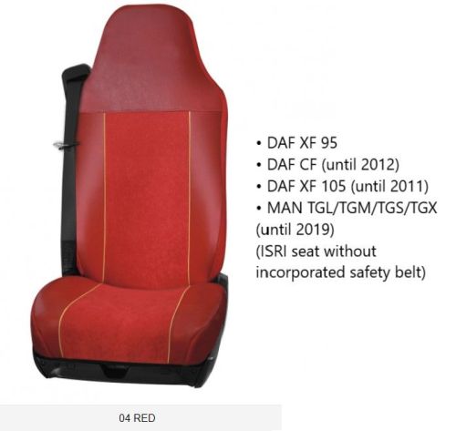 • DAF XF 95 • DAF CF (jusqu'à 2012) • DAF XF 105 (jusqu'à 2011) • MAN TGL/TGM/TGS/TGX (jusqu'à 2019) (ISRI seat without incorporated safety belt)