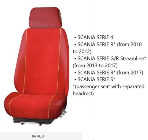 • SCANIA SERIE 4 • SCANIA SERIE R* (de 2010 à 2012) • SCANIA SERIE G/R Streamline* (de 2013 à 2017) • SCANIA SERIE R* (a partir de 2017) • SCANIA SERIE S* *(siège passager avec appui-tête séparé)
