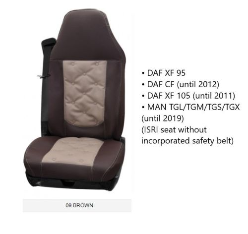 • DAF XF 95 • DAF CF (jusqu'à 2012) • DAF XF 105 (jusqu'à 2011) • MAN TGL/TGM/TGS/TGX (jusqu'à 2019) (ISRI seat without incorporated safety belt)