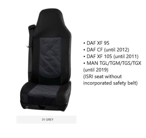 • DAF XF 95 • DAF CF (jusqu'à 2012) • DAF XF 105 (jusqu'à 2011) • MAN TGL/TGM/TGS/TGX (jusqu'à 2019) (ISRI seat without incorporated safety belt)