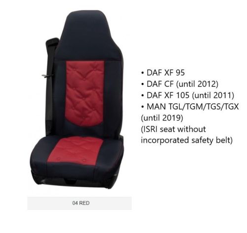 • DAF XF 95 • DAF CF (jusqu'à 2012) • DAF XF 105 (jusqu'à 2011) • MAN TGL/TGM/TGS/TGX (jusqu'à 2019) (ISRI seat without incorporated safety belt)