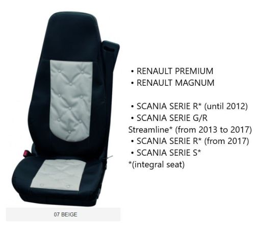 • RENAULT PREMIUM • RENAULT MAGNUM • SCANIA SERIE R* (jusqu'à 2012) • SCANIA SERIE G/R Streamline* (jusqu'à 2013 to 2017) • SCANIA SERIE R* (à partir de 2017) • SCANIA SERIE S* *(isiège intégral)