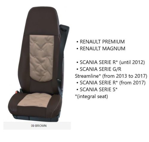 • RENAULT PREMIUM • RENAULT MAGNUM • SCANIA SERIE R* (jusqu'à 2012) • SCANIA SERIE G/R Streamline* (jusqu'à 2013 to 2017) • SCANIA SERIE R* (à partir de 2017) • SCANIA SERIE S* *(isiège intégral)