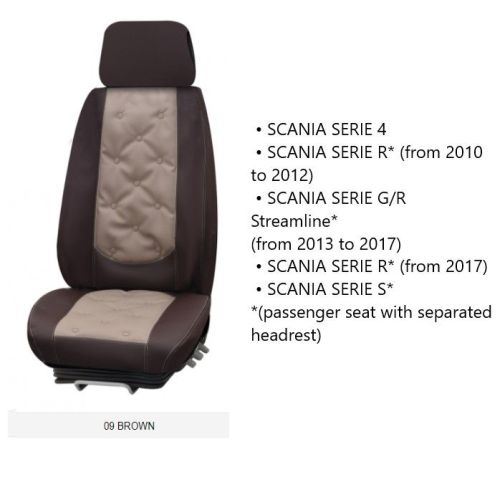 • SCANIA SERIE 4 • SCANIA SERIE R* (de 2010 à 2012) • SCANIA SERIE G/R Streamline* (de 2013 à 2017) • SCANIA SERIE R* (a partir de 2017) • SCANIA SERIE S* *(siège passager avec appui-tête séparé)
