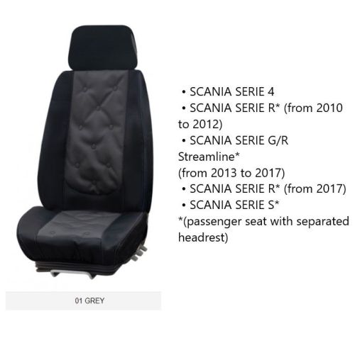 • SCANIA SERIE 4 • SCANIA SERIE R* (de 2010 à 2012) • SCANIA SERIE G/R Streamline* (de 2013 à 2017) • SCANIA SERIE R* (a partir de 2017) • SCANIA SERIE S* *(siège passager avec appui-tête séparé)