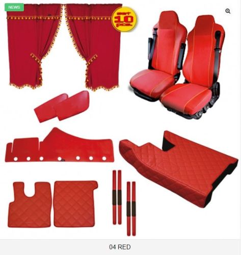 • DAF XF105 2012 -> • SuperSpace Cab • 2x housse de siège • jeu rideaux latérales • jeu entre-rideaux • rideau pare-brise • habillage tableau • housse capot moteur • jeu de tapis • 2x protection poignée d'entré • panneaux de porte