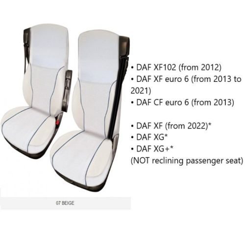 • DAF XF102 (a partir de 2012) • DAF XF euro 6 (de 2013 à 2021) • DAF CF euro 6 (a partir de 2013) • DAF XF (a partir de 2022)* • DAF XG* • DAF XG+* (Siège passager non réglable)