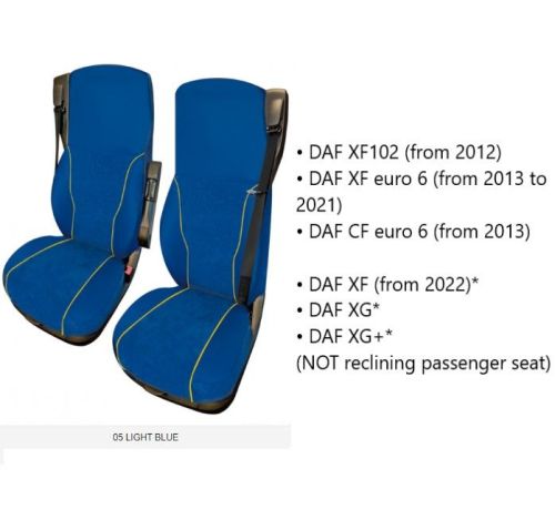 • DAF XF102 (a partir de 2012) • DAF XF euro 6 (de 2013 à 2021) • DAF CF euro 6 (a partir de 2013) • DAF XF (a partir de 2022)* • DAF XG* • DAF XG+* (Siège passager non réglable)