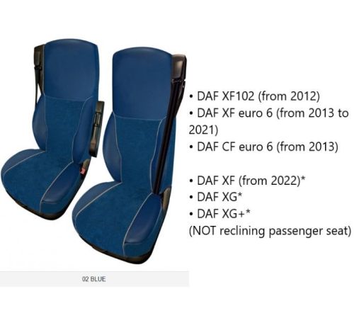 • DAF XF102 (a partir de 2012) • DAF XF euro 6 (de 2013 à 2021) • DAF CF euro 6 (a partir de 2013) • DAF XF (a partir de 2022)* • DAF XG* • DAF XG+* (Siège passager non réglable)