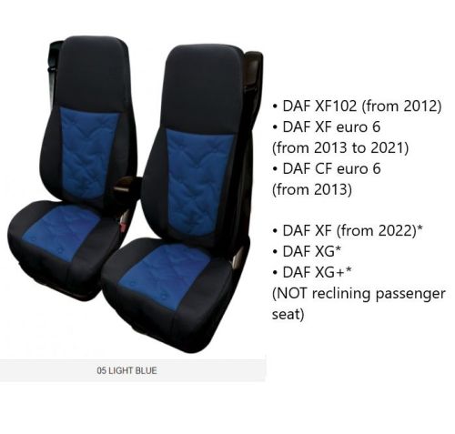 • DAF XF102 (a partir de 2012) • DAF XF euro 6 (de 2013 à 2021) • DAF CF euro 6 (a partir de 2013) • DAF XF (a partir de 2022)* • DAF XG* • DAF XG+* (Siège passager non réglable)