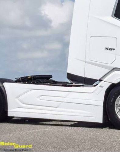 "Jeu 2 pièces A monter sous la jupe latérale DAF d'origine Produit en polyester de haute qualité Pièce exclusive Solarguard Peut être monté à l'aide de 3 supports Livré en Gelcoat blanc Non pulvérisé Empattement approprié de 400 cm La longueur de cette partie est de 257 cm Avant de pulvériser, veuillez d'abord ajuster."