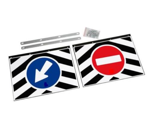 37cm x 53cm (2x) / épaisseur 5mm / Jeu de montage galvanisé inclus / Noir souple 2-pièces (1x flêche + 1x sense interdit)
