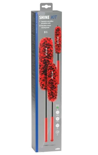"Kit brillance 3 brosses de nettoyage roues microfibre Brosse en microfibre anti-rayures robuste mais douce, conçue pour nettoyer les jantes en alliage et les enjoliveurs en plastique. Atteint même les endroits les plus difficiles. Sans danger pour vos roues Résistant aux produits chimiques Manche en polypropylène avec grip antidérapant (S) 32 x Ø 4 cm (M) 38 x Ø 5 cm (L) 47 x Ø 6 cm"