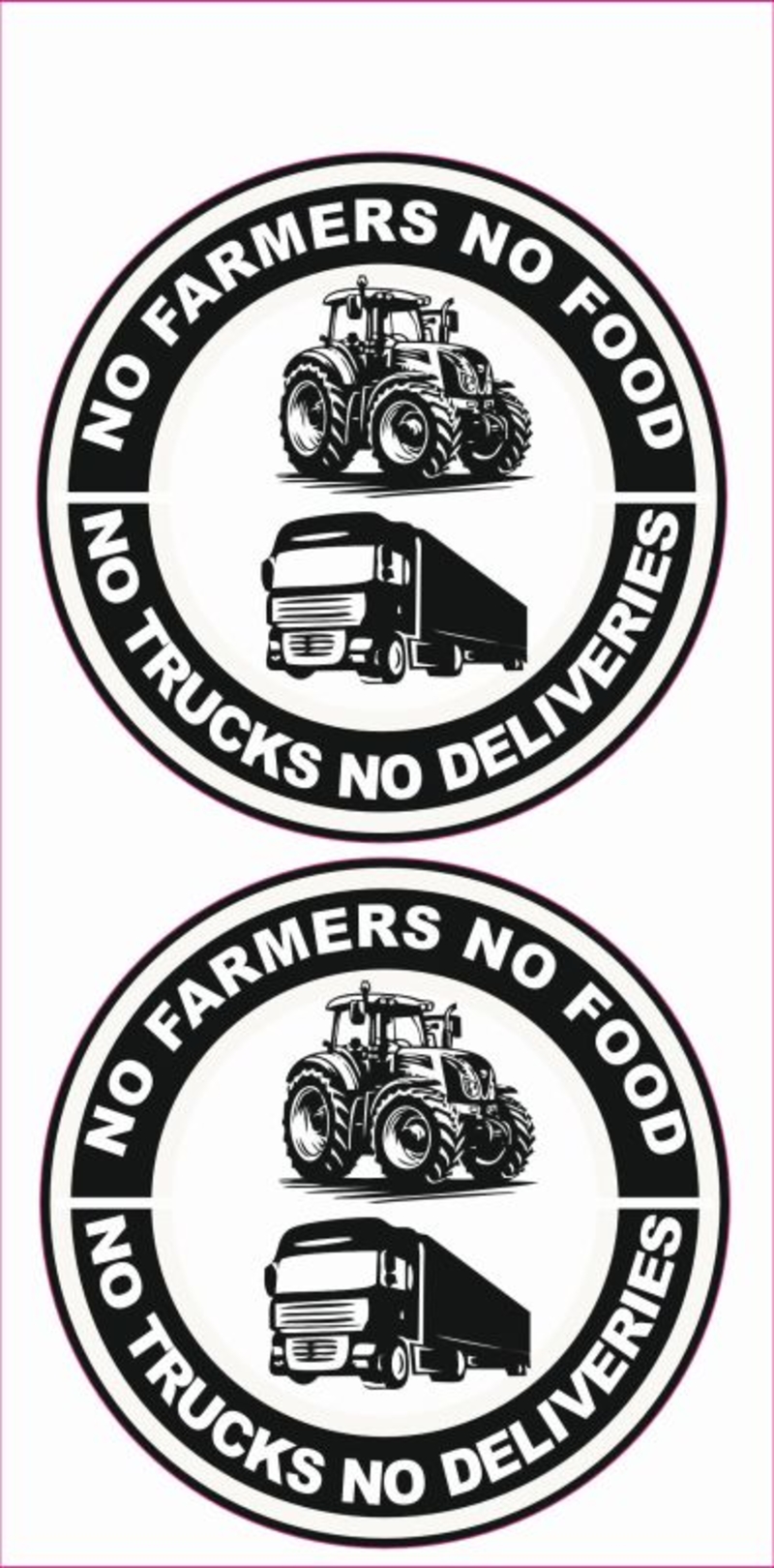 Jeu d'autocollant 'No farms , No trucks' rond 10 cm 2pcs