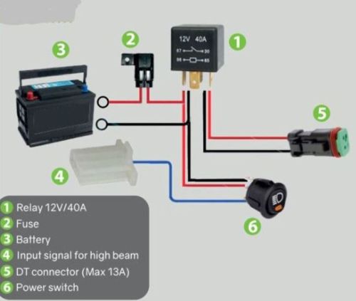 "Relais Pro avec connecteurs DT pour une utilisation avec des feux auxiliaires, des barres et des feux de travail. Le connecteur DT des câblages de relais signifie que vous obtenez un point de jonction serré pour nos lumières et un porte-fusible protégé contre l'eau garantit que vous n'obtenez pas d'humidité/sel qui peut affecter le fonctionnement et la durée de vie. Avec un interrupteur d'alimentation. Caractéristiques: • Conçu pour 12 V • 1 connecteurs DT • Relais 12V 40A • Changer • Un connecteur DT peut gérer un maximum de 13 A • Porte-fusible étanche • Fonctionne pour les voitures avec et sans Canbus"