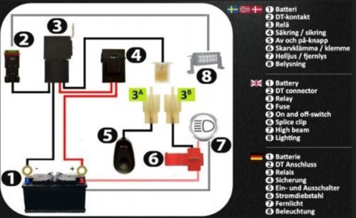 "Relais avec connecteur DT et bouton pour une connexion facile de la lumière auxiliaire ou de la barre LED. Un éclairage externe ou une barre LED n'a besoin que d'un seul connecteur DT. Deux lumières nécessitent deux connecteurs DT, etc. Contrôlez votre lumière auxiliaire avec le bouton d'alimentation idéalement situé à l'intérieur du véhicule ou en vous connectant directement au feu de route (la lumière extérieure s'allumera automatiquement lorsque vous passerez à votre feu de route et s'éteindra lorsque vous reviendrez au feu de croisement). Fonctionne avec les véhicules avec et sans Canbus. • 1 connecteurs DT • relais 24V 40A • Interrupteur • Fusible jusq'à 80A"