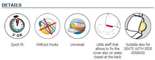 "Jeu universel de housses de sièges pour voiture avex pose tête apart , Composition : coton et polyester , disponible en 5 couleurs : gris , bleu, gris foncé , beige et vert kaki "