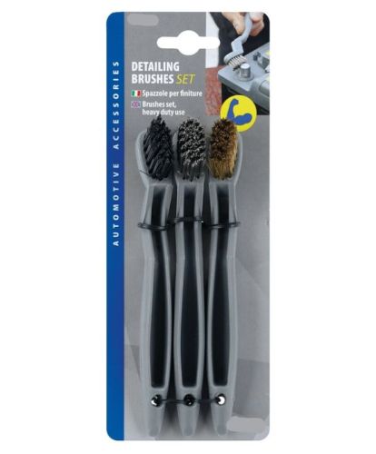 "Ensemble de pinceaux de détail, usage intensif Manche en PP avec forme spéciale à double point de pression pour un nettoyage efficace et sans effort, doté d'un trou de suspension Parfait pour le nettoyage et la finition extérieure : La brosse à poils en plastique est spécifique pour nettoyer les endroits étroits et inconfortables à atteindre. Les poils en laiton sont parfaits pour éliminer les petites taches de rouille, pour les bougies d'allumage et les pinces de batterie. La brosse à poils en acier inoxydable est conçue pour éliminer les traces de rouille des composants métalliques. Dimension : 175mm"