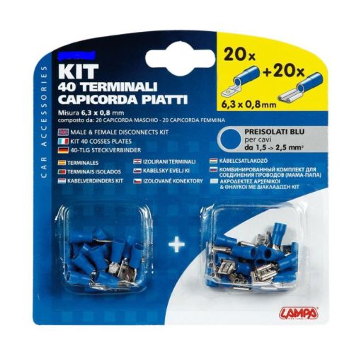 Jeu fiches electrique bleu 6,3x0,8mm mâle+femelle (40pcs)