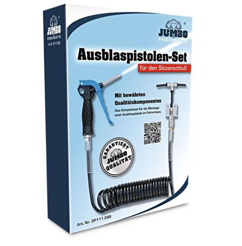 "Ensemble universel • Ensemble XL de pistolets à air comprimé (incl. 3 buses) • Pistolet à air robuste avec débit réglable • Crochet chromé pour accrocher le pistolet • 3 embouts en plastique : pour les grandes surfaces, pour un travail précis et 1 embout à air puissant • Tuyau spiralé de 5 m avec force de rappel permanente et protection anti-torsion • Couplage à une main avec support de montage • Conduite de pression de 1,5 m (6 mm) avec connecteur en T pour le branchement de l'alimentation en air au siège du conducteur"