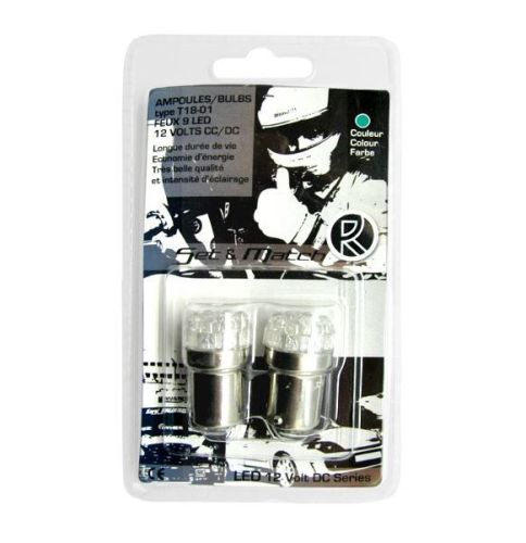 Lampe à led 9LED vert 12V/BA15S (2pièces)