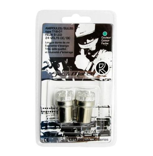 Lampe à led 9LED vert 24V/BA15S (2pièces)