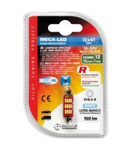 Lampe à led blanc 10-30V/12x41mm "mega led" (par pièce)