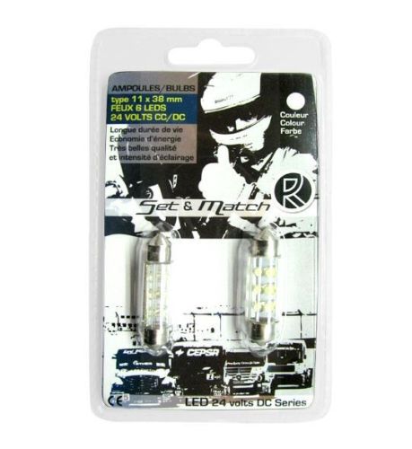 Lampe LED blanc 6LED navette 11x38mm/24V (2pièces)